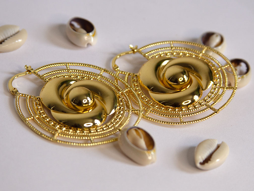Découvrez Naaj, des boucles d’oreilles rondes et audacieuses qui allient force et féminité. Leur forme circulaire imposante en fait une pièce statement, pensée pour sublimer chaque mouvement avec élégance.