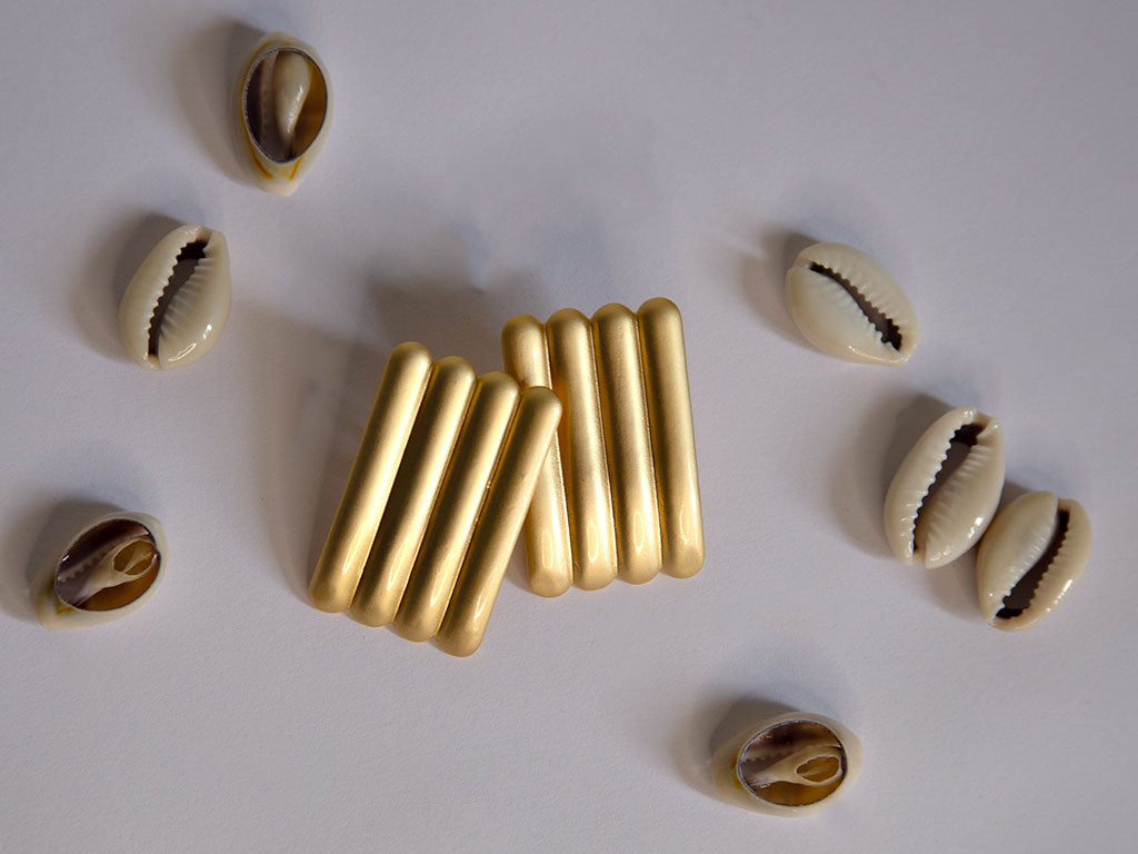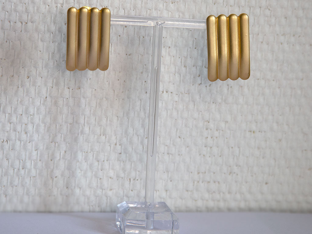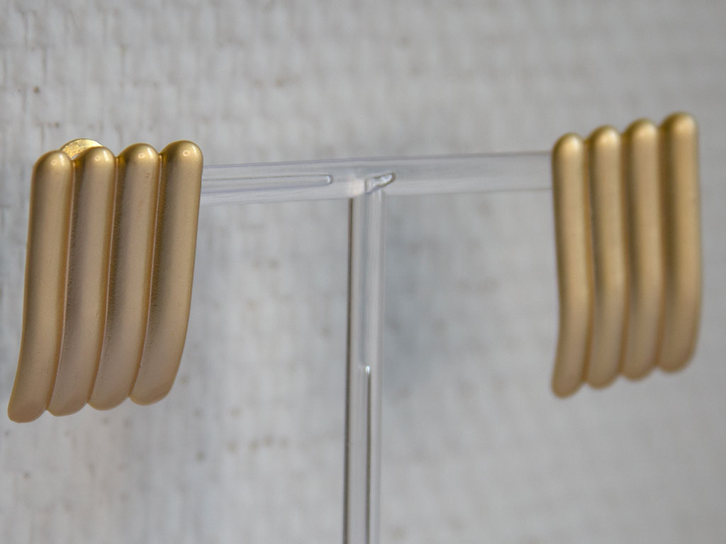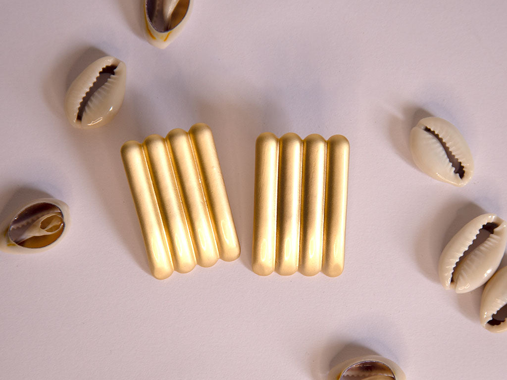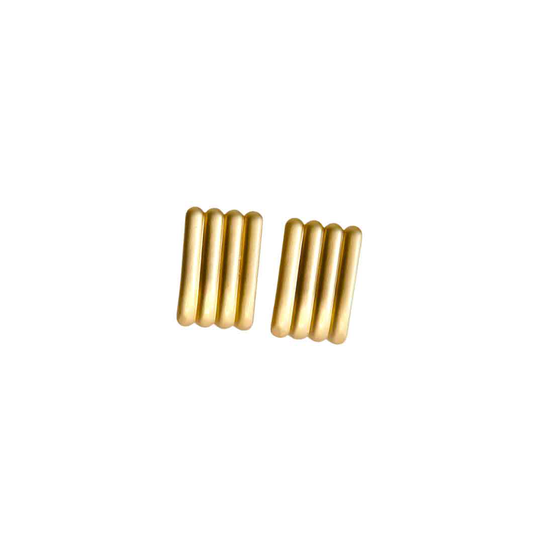 Ligne après ligne, ces boucles d’oreilles rectangulaires dessinent une silhouette à la fois structurée et élégante. Leur surface texturée de lignes verticales capte délicatement la lumière, apportant relief et caractère à ce bijou doré au style contemporain.