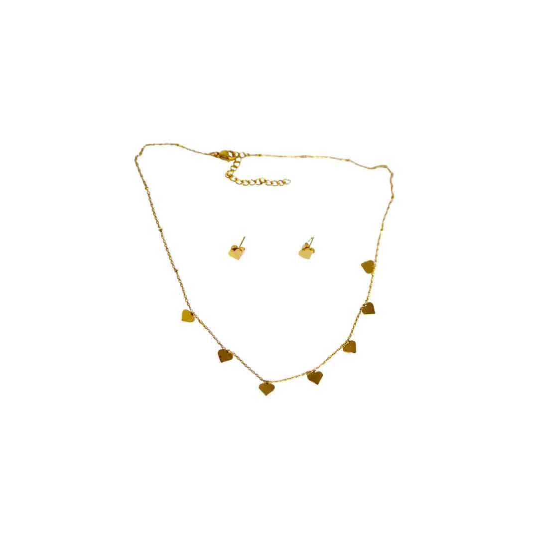 Craquez pour ce set bijou doré composé d’un collier fin orné de cœurs et de boucles d’oreilles puces assorties. Un duo parfait pour apporter une touche romantique et lumineuse à vos tenues, tout en restant délicat et élégant.