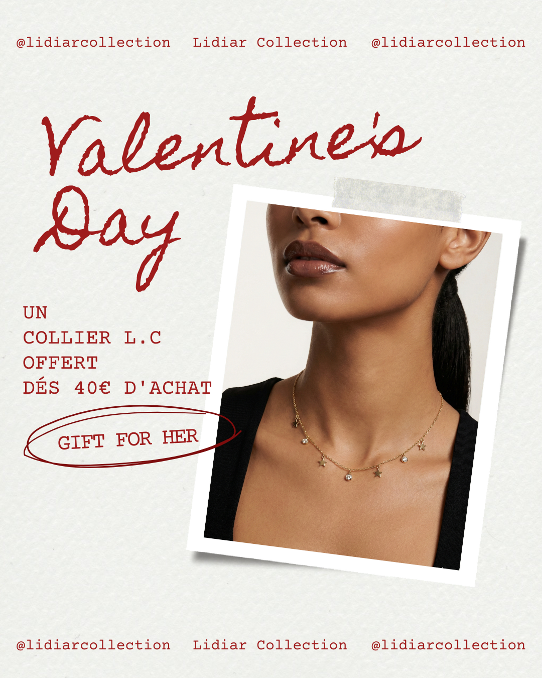 Pour tout achat de 40€ ou plus, nous vous offrons un collier Lidiar Collection pour compléter votre look. C'est le moment idéal pour craquer ou pour gâter une personne chère !
