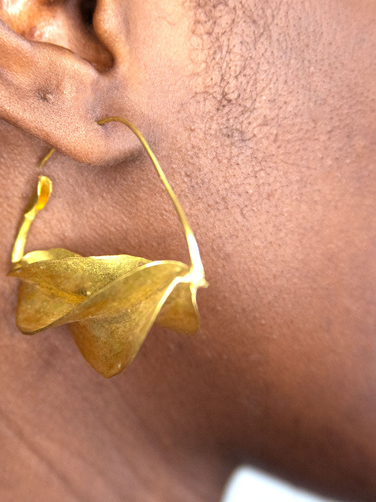 Bonko incarne l’essence des bijoux traditionnels africains avec une touche de modernité. Inspirées des créoles Peul, ces boucles d’oreilles en bronze doré séduisent par leur forme généreuse, leurs volumes équilibrés et leur aura authentique et élégante.